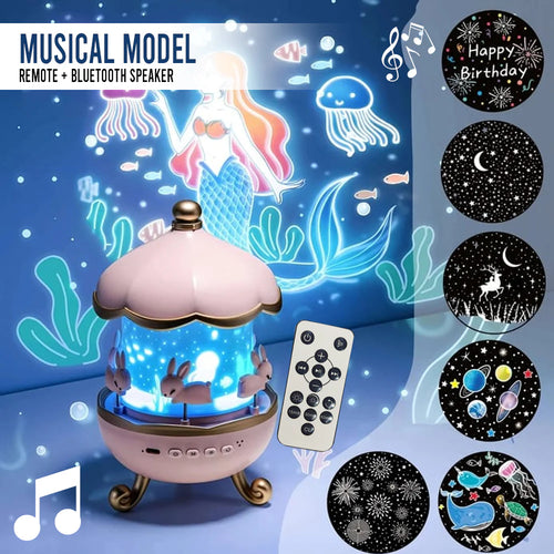 مصباح الأرانب الدوار 3 في 1: جهاز عرض نجوم، سبيكر بلوتوث، وإضاءة ليلية ساحرة